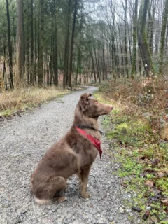 Mila bewegt sich sehr gern und fühlt sich besonders bei ruhigen Spaziergängen in der Natur, z. B. im Wald oder in reizarmen Gegenden, sichtbar wohl. In solchen Situationen ist sie aufmerksam, ausgeglichen und genießt die gemeinsame Zeit sehr.